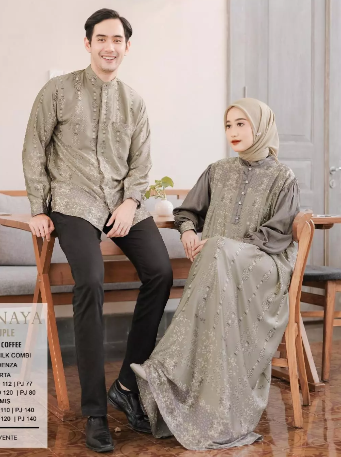 Nama Produk : ShanayaBahan : Silk Kombinasi CredenzaUkuran : Allsize LD 110 dan 120Motif : MotifWarna : Taupe Bone Coffe Dusty Cocok Digunakan Pada Musim Panas di IndonesiaTrend Couple Pasangan Kemeja dan Gamis Tahun 2025Support Brand Lokal