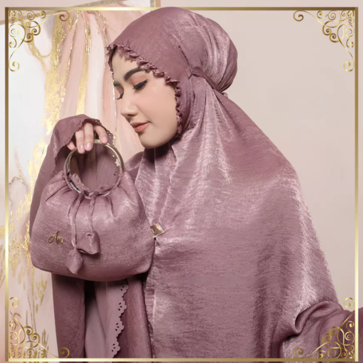> Tas elegant yang bisa menyesuaikan ukuran dengan lipatan mukena