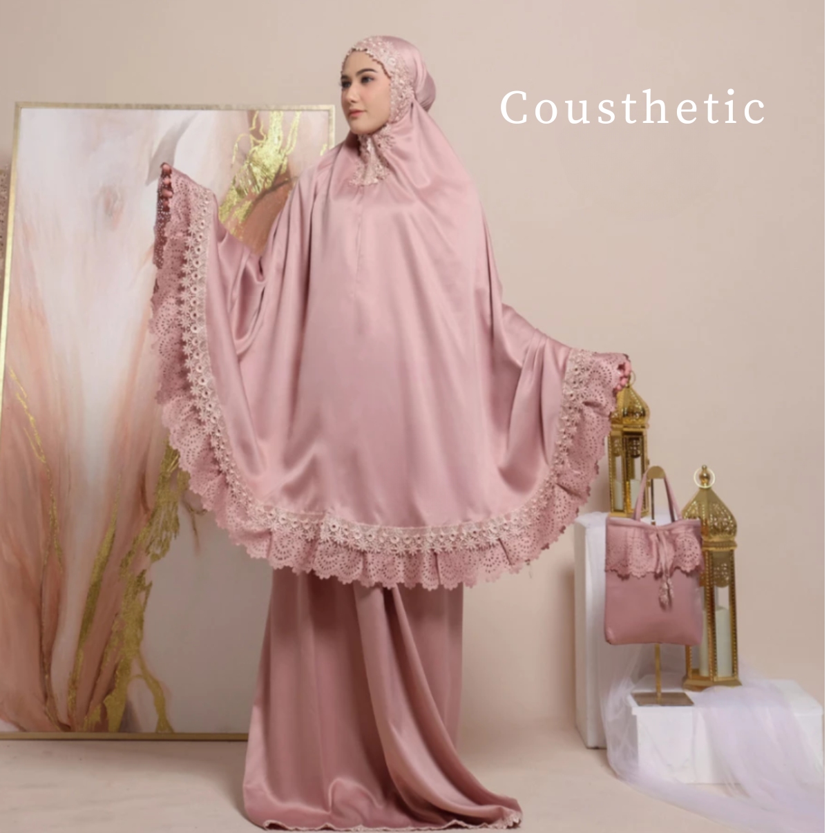 > Satu Set Mukena : Atasan + Bawahan + Tas Yang Di serasikan Dengan Mukenanya